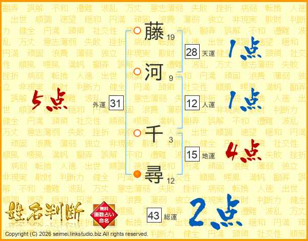藤河千尋さんの総運は43画の2点!