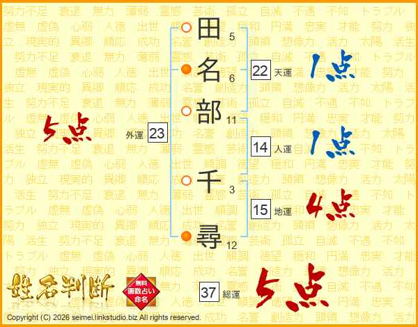 田名部千尋さんの総運は37画の5点!