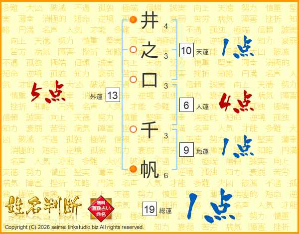 井之口千帆さんの外運は13画の5点!