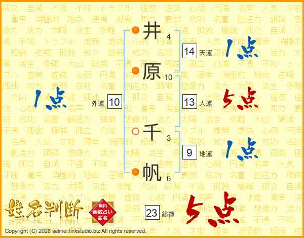 井原千帆さんの人運は13画の5点!