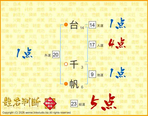 台千帆さんの総運は23画の5点!