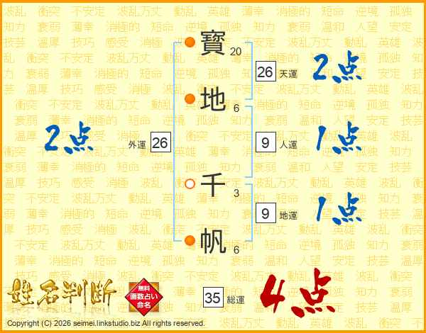 寳地千帆さんの総運は35画の4点!