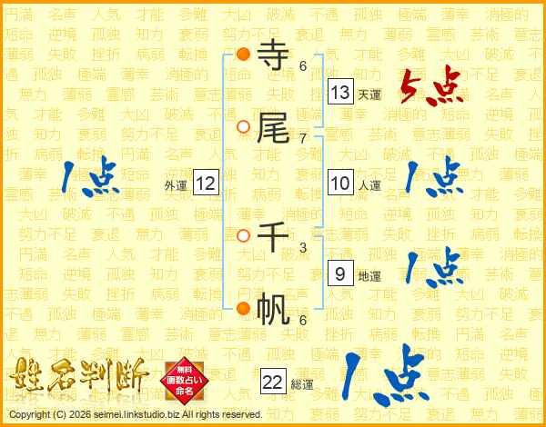 寺尾千帆さんの総運は22画の1点!