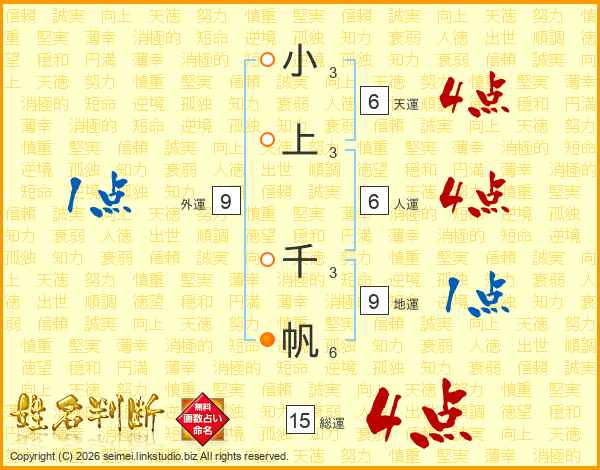 小上千帆さんの総運は15画の4点!