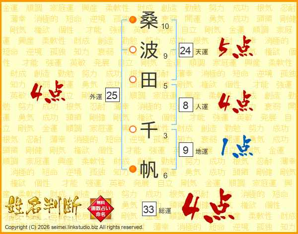 桑波田千帆さんの総運は33画の4点!