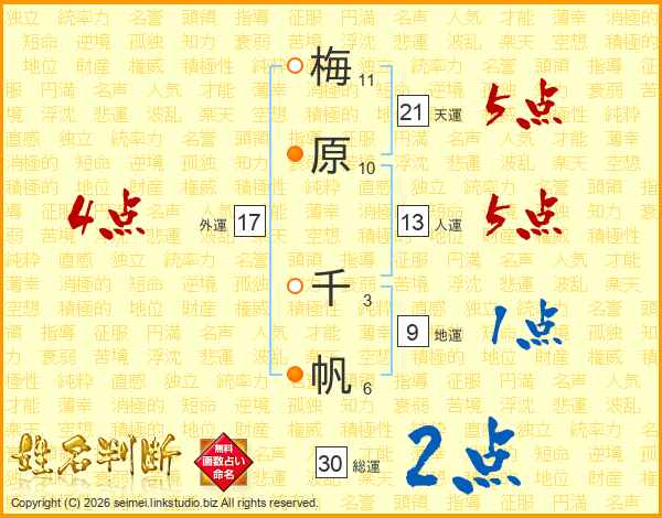 梅原千帆さんの総運は30画の2点!