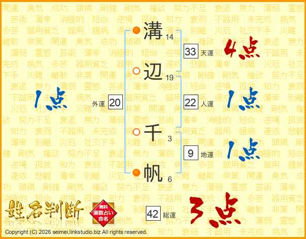 溝(14画)辺(19画) 千(3画)帆(6画)
