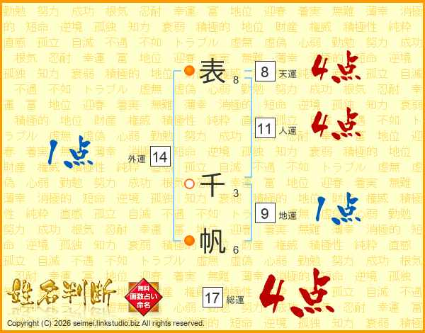 表千帆さんの総運は17画の4点!
