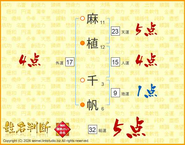 麻植千帆さんの総運は32画の5点!