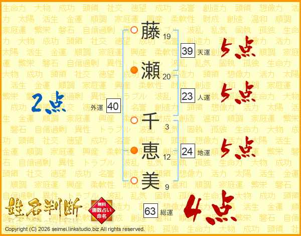 藤瀬千恵美さんの天運は39画の5点!
