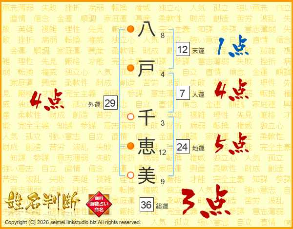 八戸千恵美さんの外運は29画の4点!