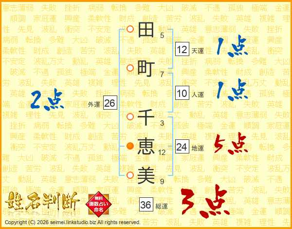 田町千恵美さんの天運は12画の1点!