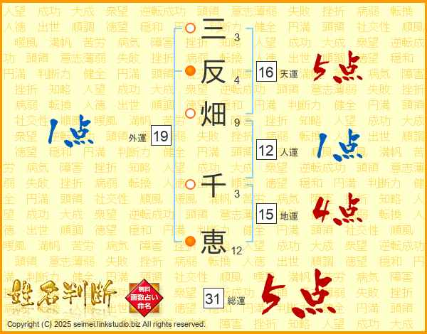 三反畑千恵さんの総運は31画の5点!