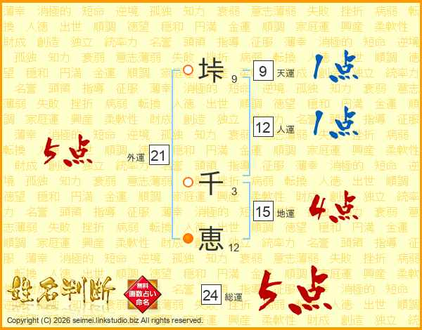垰千恵さんの外運は21画の5点!
