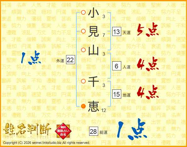 小(3画)見(7画)山(3画) 千(3画)恵(12画)