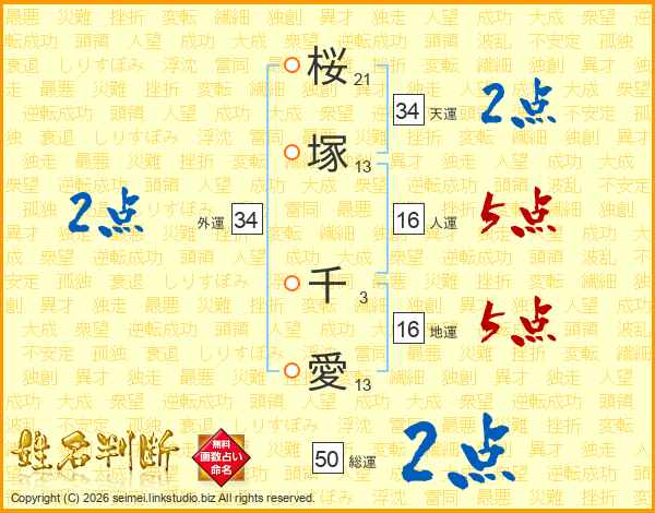 桜塚千愛さんの総運は50画の2点!