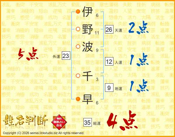 伊野波千早さんの天運は26画の2点!
