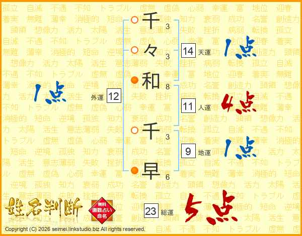 千々和千早さんの総運は23画の5点!