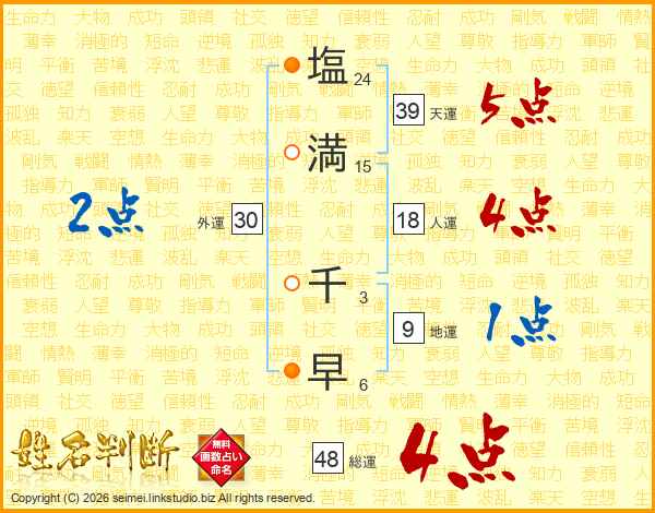 塩満千早さんの総運は48画の4点!