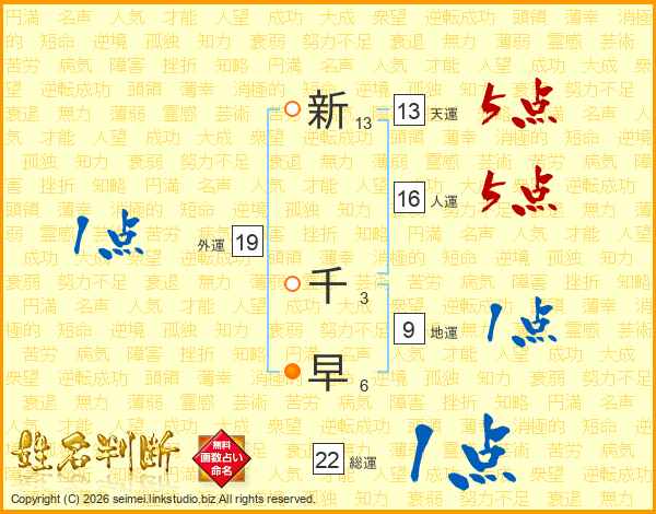新千早さんの天運は13画の5点!