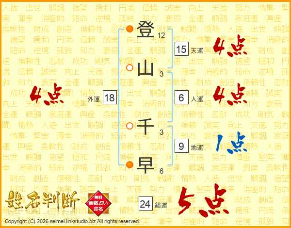 登山千早さんの総運は24画の5点!