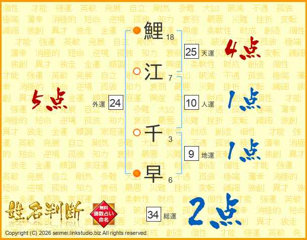 鯉江千早さんの天運は25画の4点!