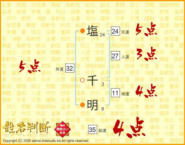 塩(24画) 千(3画)明(8画)