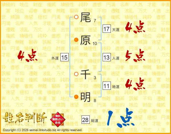 尾原千明さんの総運は28画の1点!