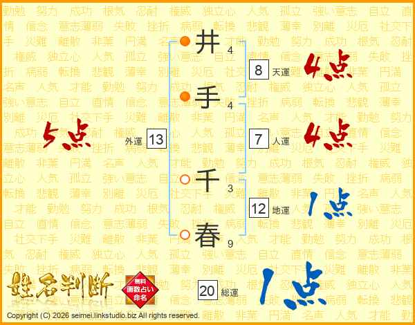 井(4画)手(4画) 千(3画)春(9画)