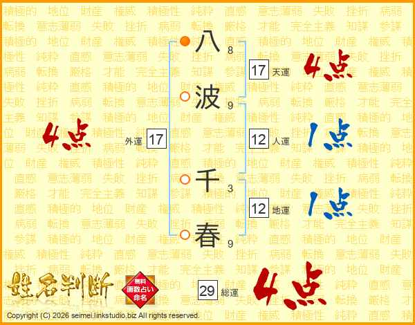 八波千春さんの総運は29画の4点!