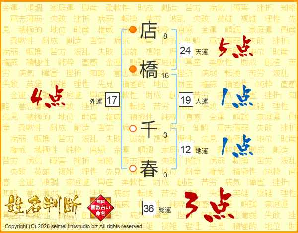 店橋千春さんの天運は24画の5点!
