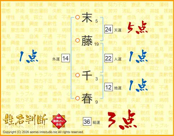末藤千春さんの総運は36画の3点!