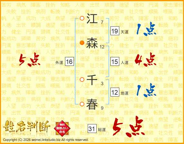 江森千春さんの総運は31画の5点!