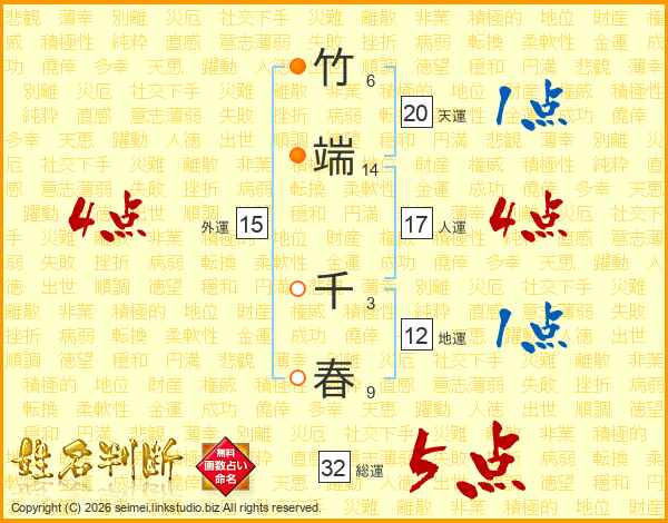竹端千春さんの天運は20画の1点!