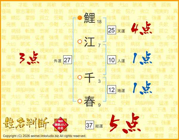 鯉江千春さんの総運は37画の5点!