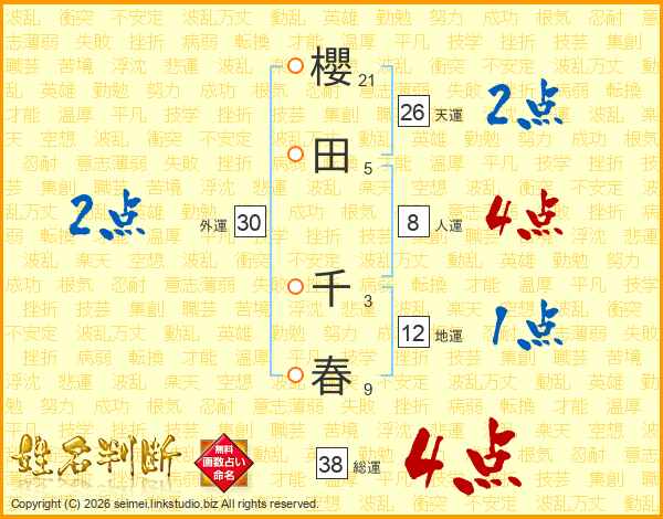 櫻田千春さんの総運は38画の4点!