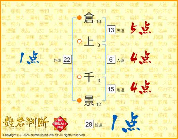 倉上千景さんの総運は28画の1点!