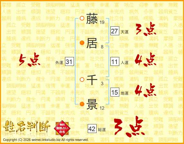 藤(19画)居(8画) 千(3画)景(12画)