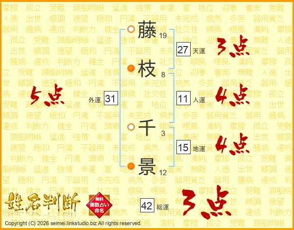 藤(19画)枝(8画) 千(3画)景(12画)