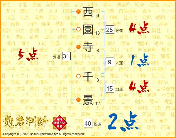 西園寺千景さんの総運は40画の2点!