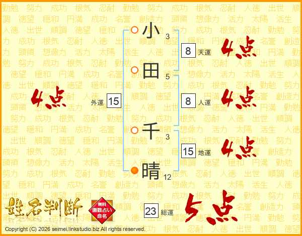 小田千晴さんの天運は8画の4点!