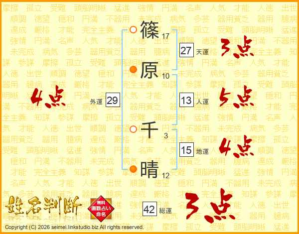 篠(17画)原(10画) 千(3画)晴(12画)