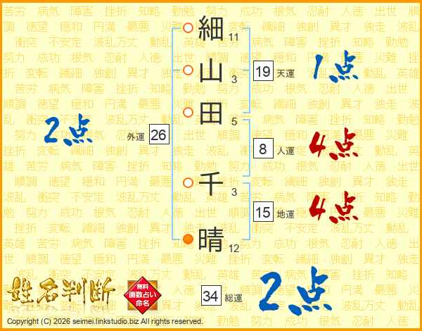 細山田千晴さんの天運は19画の1点!