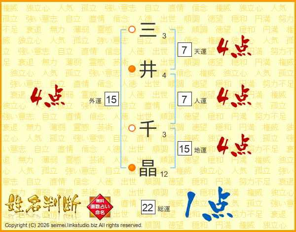 三(3画)井(4画) 千(3画)晶(12画)