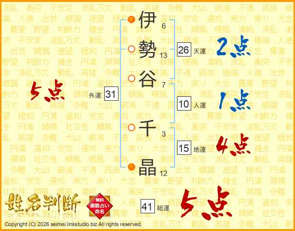 伊勢谷千晶さんの総運は41画の5点!