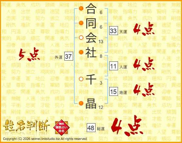 合同会社千晶さんの天運は33画の4点!