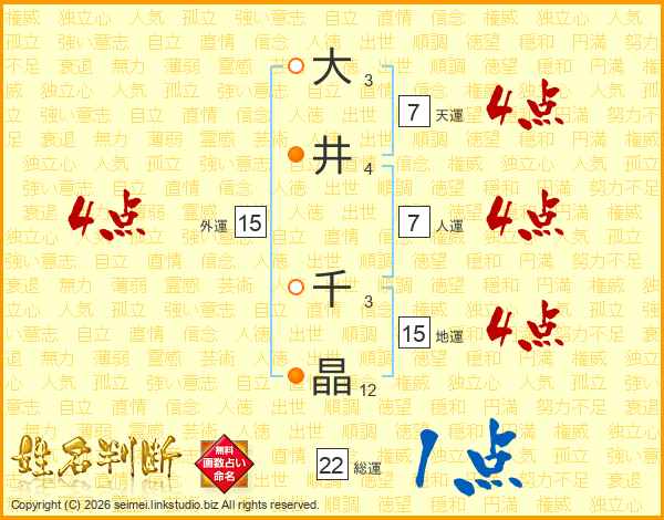 大(3画)井(4画) 千(3画)晶(12画)