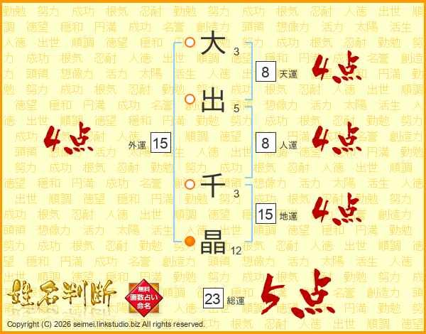 大出千晶さんの外運は15画の4点!