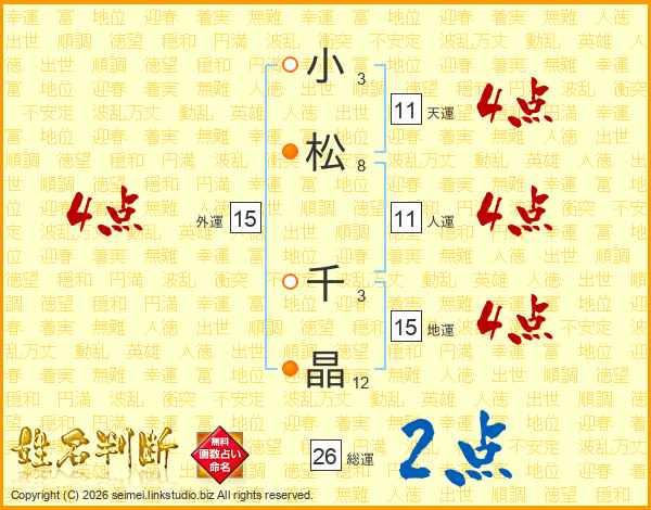 小松千晶さんの総運は26画の2点!