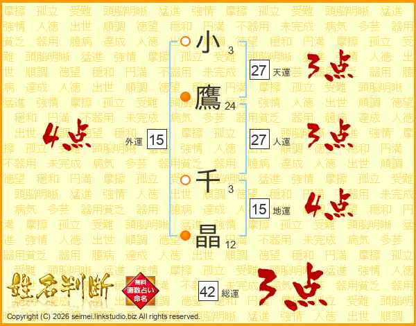 小鷹千晶さんの総運は42画の3点!